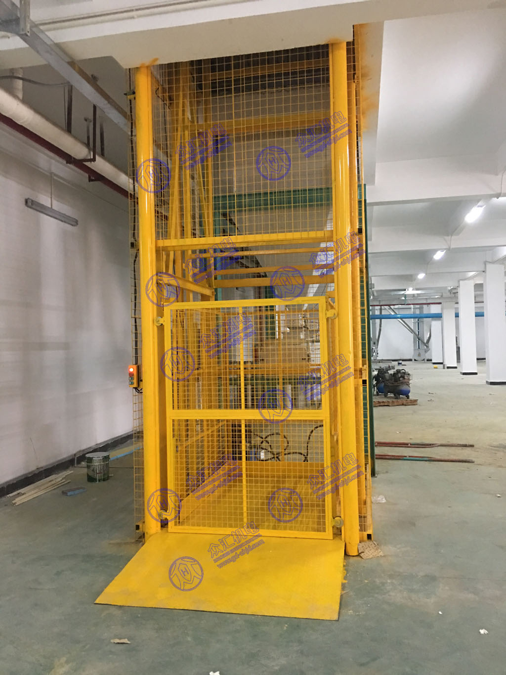 一般承載300-5000KG,整機(jī)結(jié)構(gòu)穩(wěn)固,轎廂采用電梯式箱體結(jié)構(gòu),解決了老式升降平臺(tái)的偏載問(wèn)題,轎廂四周八個(gè)點(diǎn)固定,每個(gè)點(diǎn)采用三輪定位用24個(gè)導(dǎo)向輪輪緊緊卡住軌道,使貨物不論放在那個(gè)角落整個(gè)轎廂不會(huì)存在因偏載而影響油缸的使用壽命。油缸頂部采用二級(jí)導(dǎo)向固定,保證油缸能穩(wěn)固的直線向上伸展,故而大大的保證了油封使用的壽命。