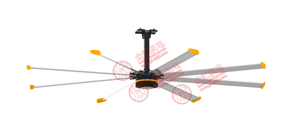 HVLS(High Volume – Low Speed),大風(fēng)量低轉(zhuǎn)速)風(fēng)機,一種直徑達7.3米的巨大吊扇!應(yīng)用空氣動力學(xué)原理和先進工藝制造的流線型扇葉,僅用1.5KW或更小的功率就可以驅(qū)動大量的空氣,產(chǎn)生超大面積的自然微風(fēng)系統(tǒng),起到通風(fēng)和降溫的雙重功能。比起傳統(tǒng)的暖通空調(diào)和小型的高速風(fēng)機,它有無可比擬的應(yīng)用優(yōu)勢,堪稱高大空間通風(fēng)降溫的完美解決方案。