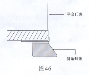門封的封墊內間距寬度設計成2.2- 2.3米寬度為好,門封可適應大多數的貨車(圖45)。平臺門寬于2.3米時,需使用斜角封墊(圖46)。